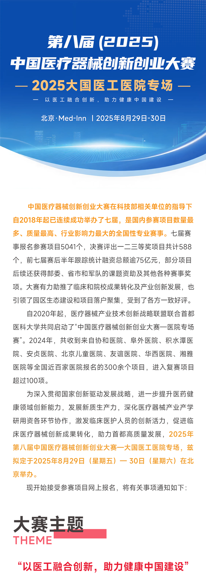 第八届(2025)中国医疗器械创新网创业大赛报名通知(第二轮)