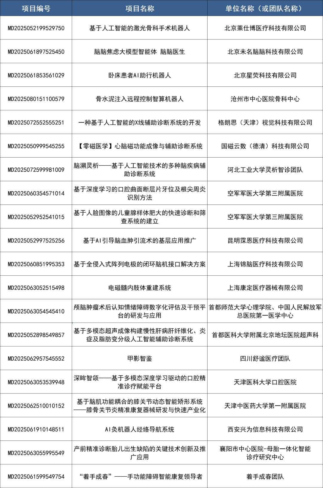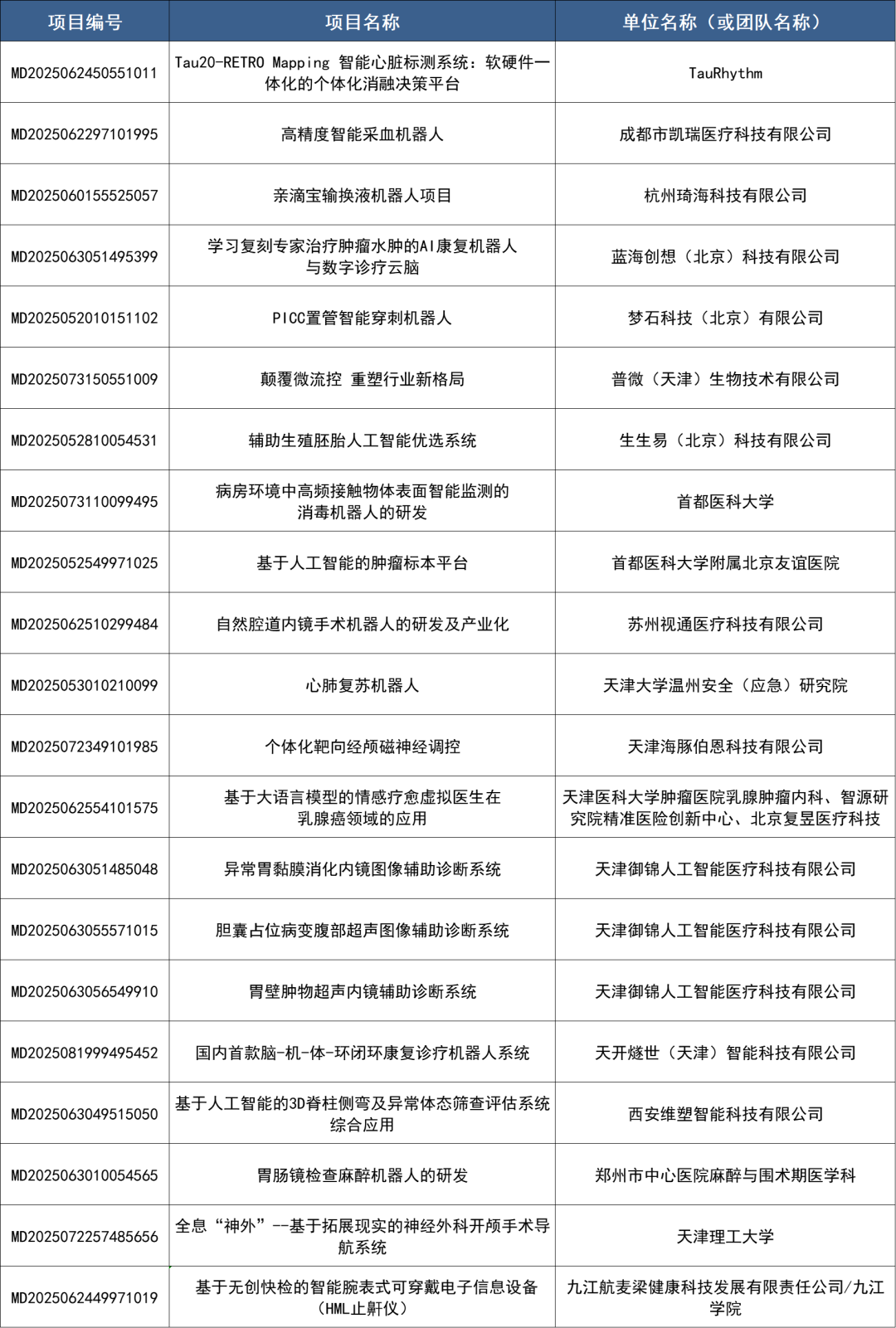 项目入围公示|第八届(2025)中国医疗器械创新网创业大赛人工智能与医用机器人类别赛