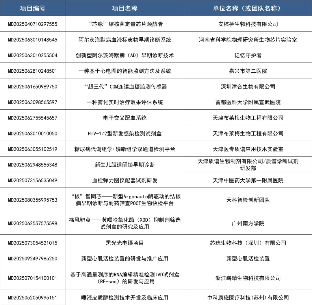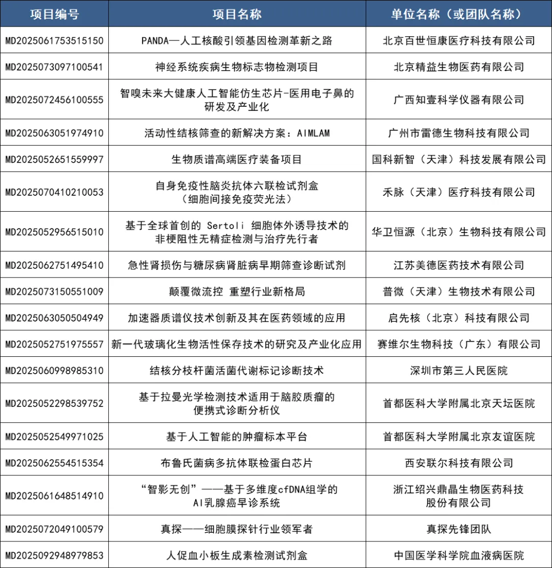 项目入围公示|第八届(2025)中国医疗器械创新网创业大赛体外诊断产品类别赛即将高燃开赛!