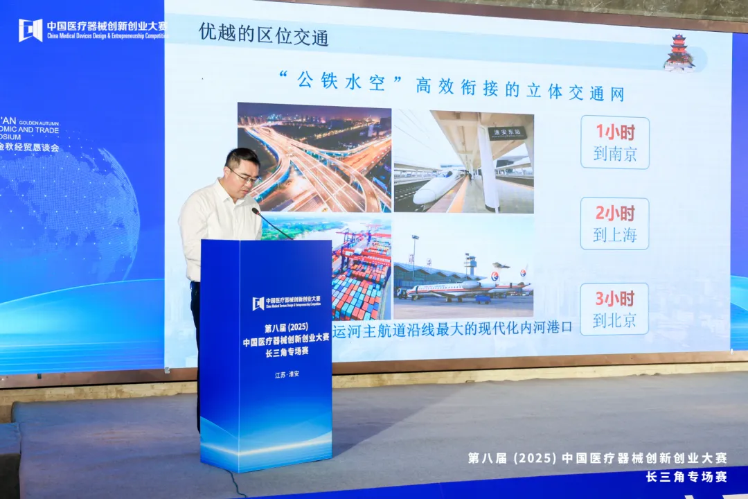 淮安市委常委、常务副市长林小明在致辞中介绍了淮安的城市定位,既点明 “历史文化名城” 底蕴,也强调宜居宜业特质、独特运河文化、便捷交通枢纽三大核心优势。随后聚焦淮安产业发展:作为 “产业新城”,近年聚力推进新型工业化,优化产业布局、塑造产业生态;列举当地特色产业及集群优势,提及电子信息、装备制造的坚实基础,特别强调生物医药与医疗器械领域的产业积淀,还介绍了当地优质相关企业以展现发展潜力。最后,林市长对淮安医疗器械产业未来寄予希冀,希望有更多的创新企业落地淮安。