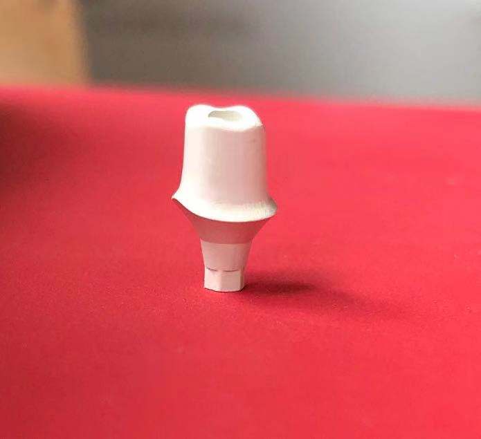 聚醚醚酮种植体所用聚醚醚酮是一种高分子化合物,其通过力学强度高、耐磨损、抗腐蚀、可透X线、密度小,具有良好的生物相容性和潜在的抑菌性,替代原有只具单一功能机械性纯属钛种植体,通过对聚醚醚酮种植体的设计及应用,聚醚醚酮种植体经过表面功能性处理后,可以降低种植体周围炎发生率,尤其是在前牙区提高美学性能,不会出现传统种植体前牙美学区反黑的不良影响;促进骨结合骨生长,缩短了临床的生长周期,使患者的缺牙期缩短;其有对X线透射的特性避免了临床工作用现有金属种植体影响临床检查的弊端。